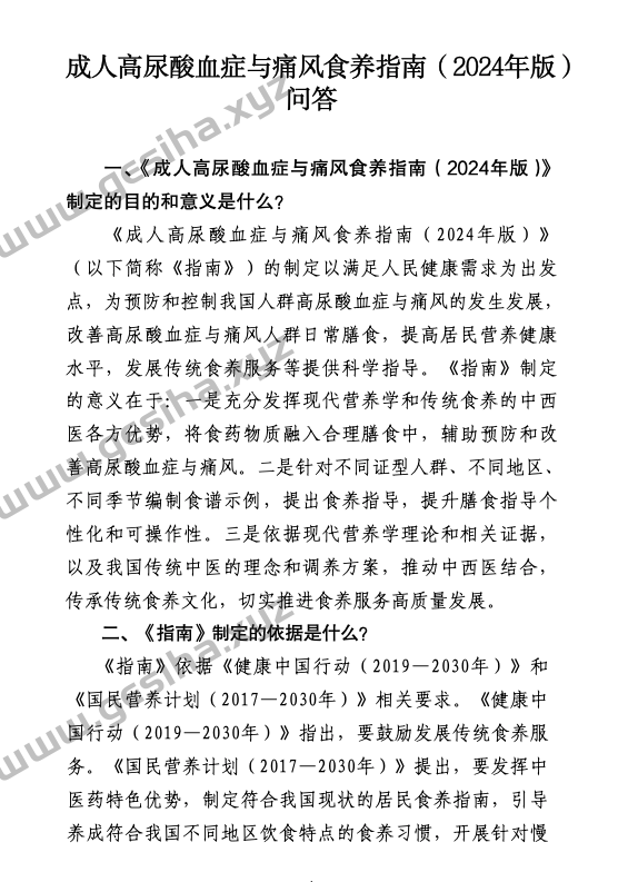 成人高尿酸血症与痛风食养指南(2024年版)等4项食养指南下载