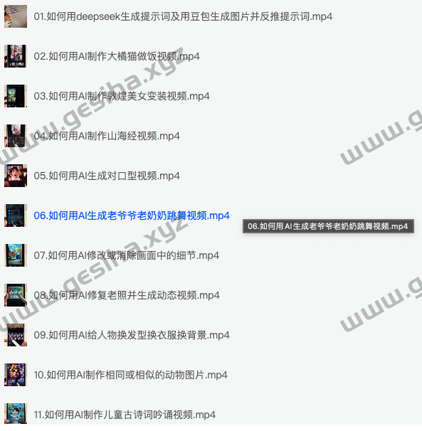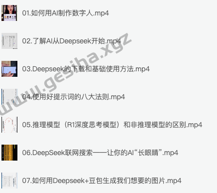 AI创意短视频剪辑全攻略到精通,夸克网盘课程,这门教程分为四大板块,覆盖最热门的AI玩法、基础实操、副业变现以及短视频剪辑技巧。热门玩法模块展示如何利用Deepseek生成提示词,再用豆包反推并生成图片,还包含大橘猫做饭、敦煌美女变装、山海经主题视频等创意案例。基础实操部分深入讲解数字人制作、Deepseek下载与联网检索、提示词八大法则和推理模型与非推理模型区别。