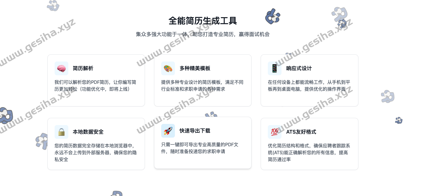 在求职过程中,简历是展示个人能力和经验的关键。然而,许多求职者在制作简历时常常面临格式调整、内容排版等繁琐问题。ResumeToJob应运而生,作为一款免费开源的在线简历制作工具,帮助求职者快速创建专业、美观的简历。支持多种模板选择、实时编辑、PDF 导出等功能,同时保护您的隐私数据安全。ResumeToJob是完全免费的工具,无需注册账号,没有隐藏收费,可以随意使用所有功能。让ResumeToJob成为您求职路上的得力助手,轻松制作专业简历,提升求职成功率。